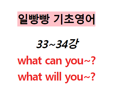 | 일빵빵 기초영어 37강~38강 (when can you/when will you/in,on,at) (0) | 2022.02.01 |